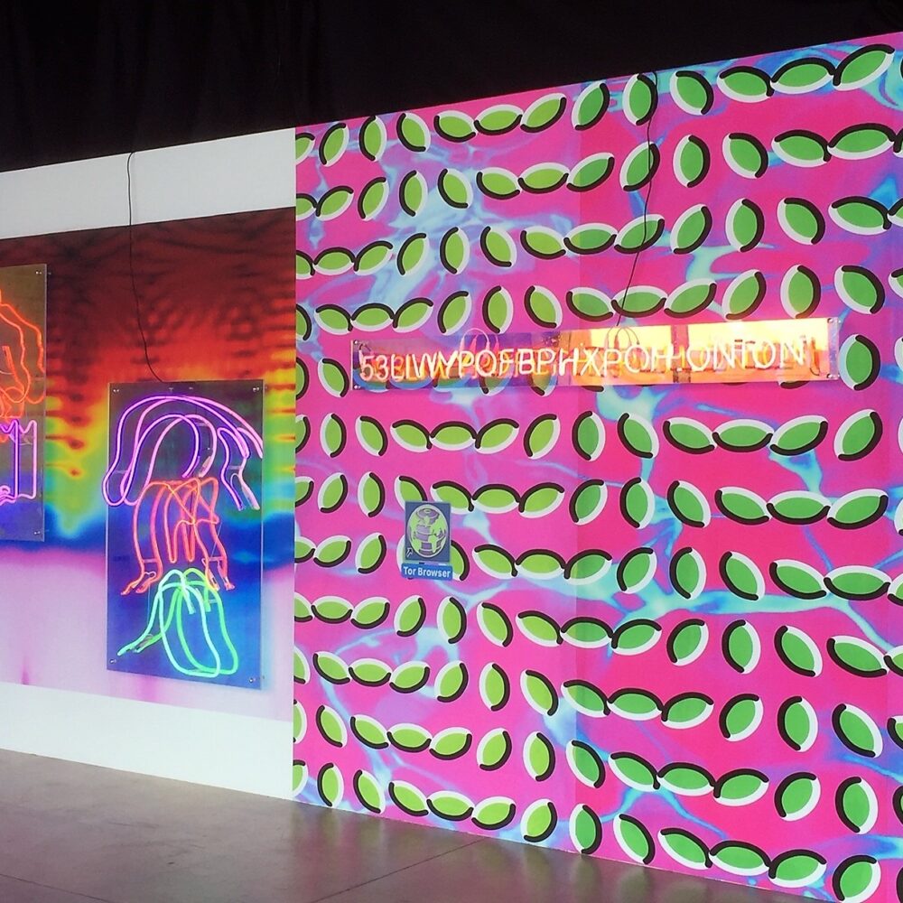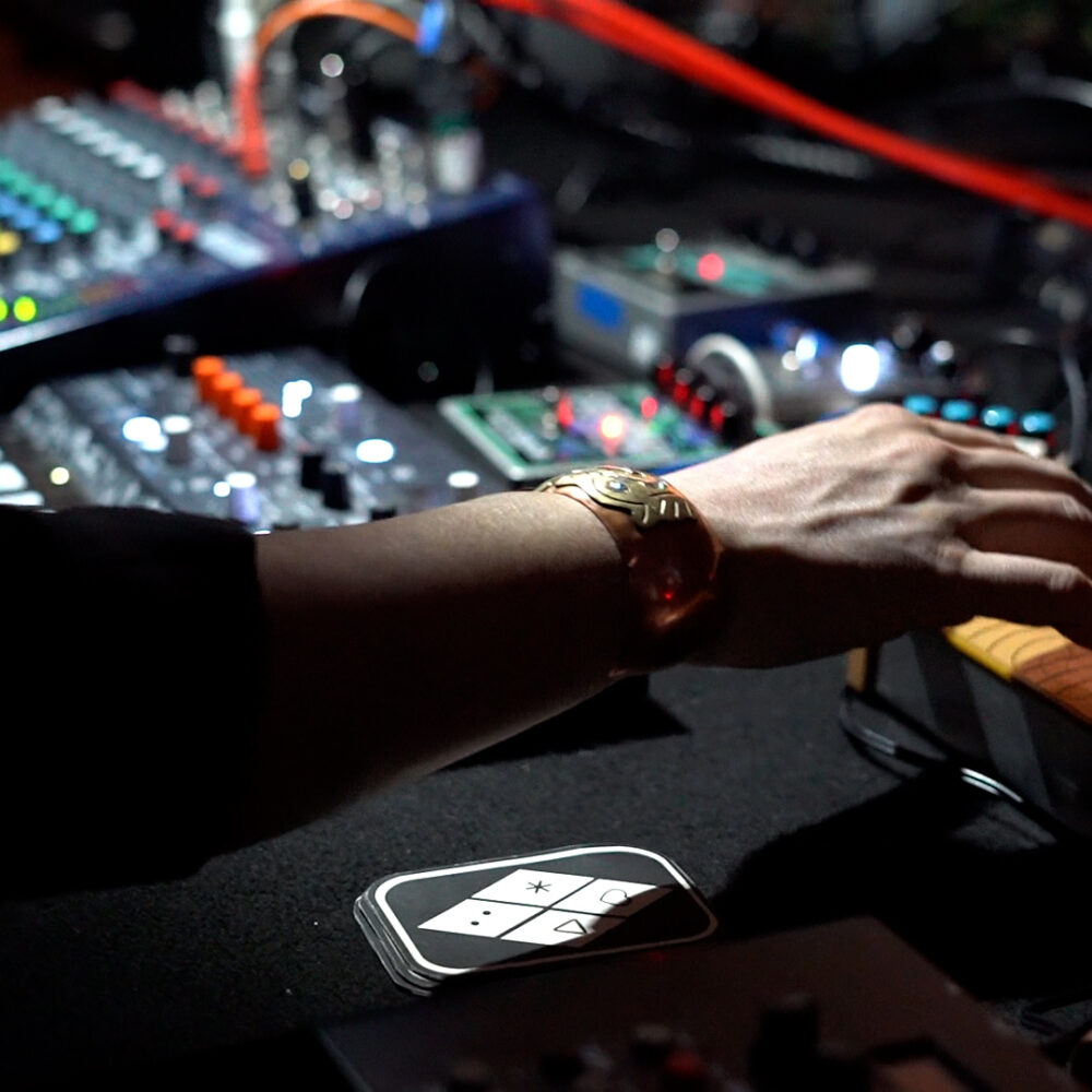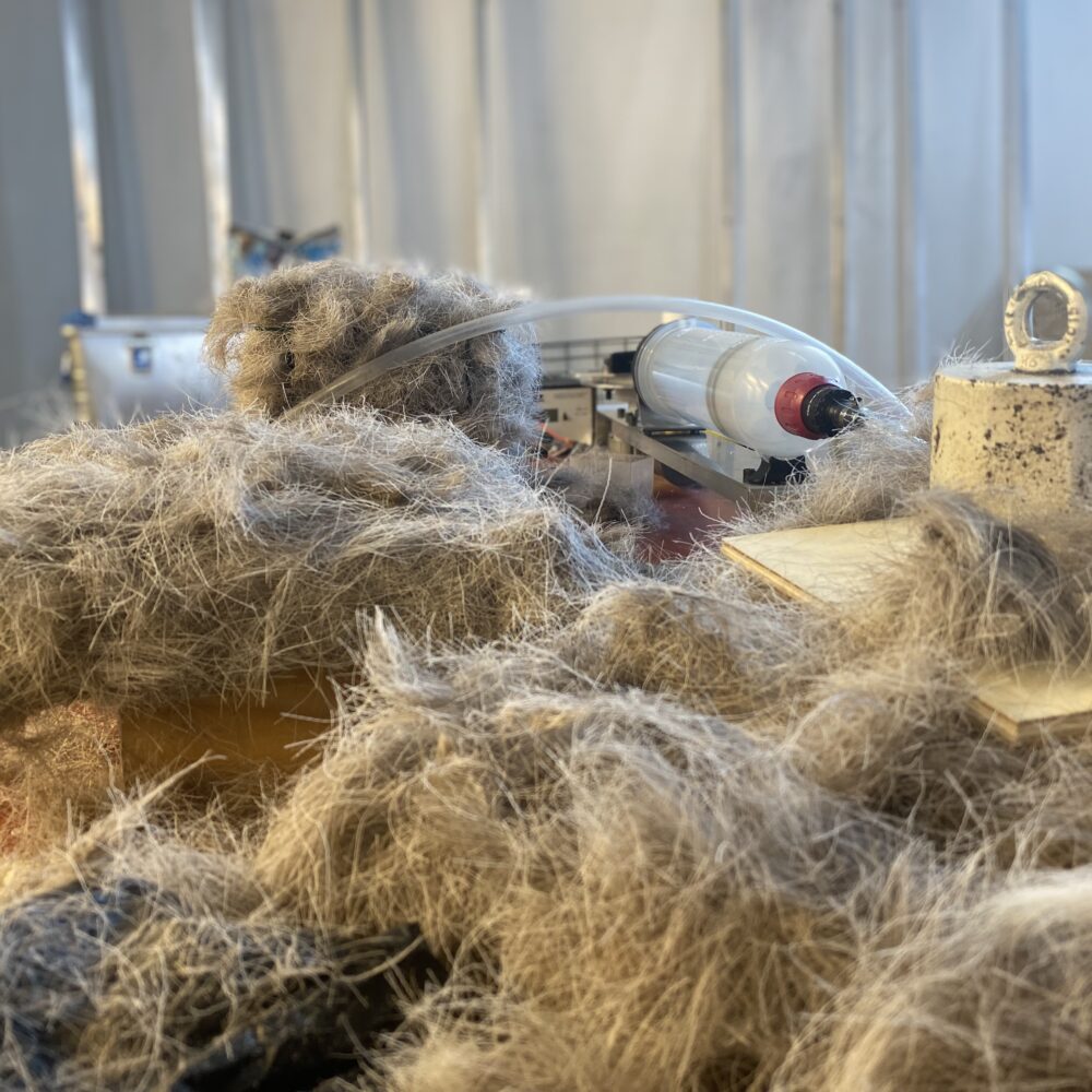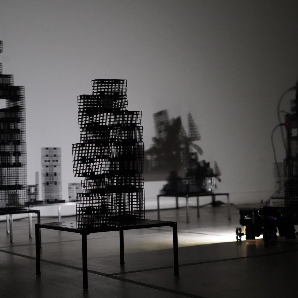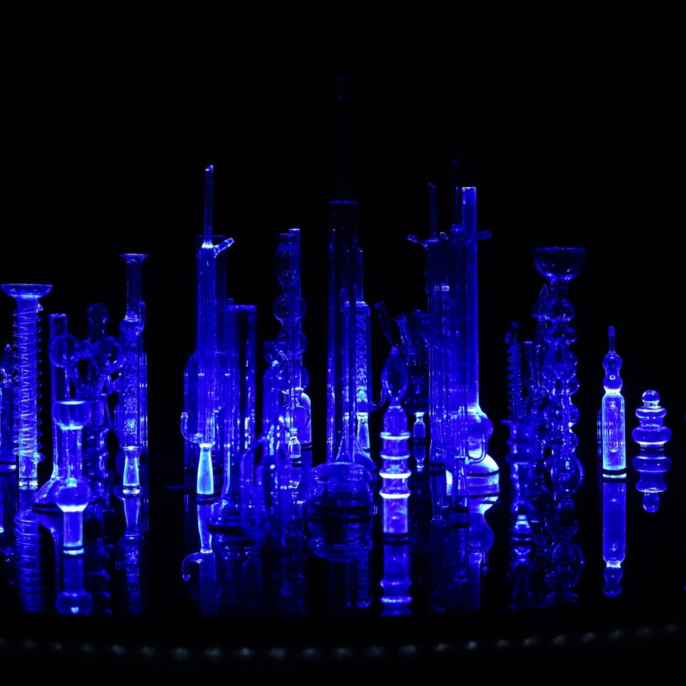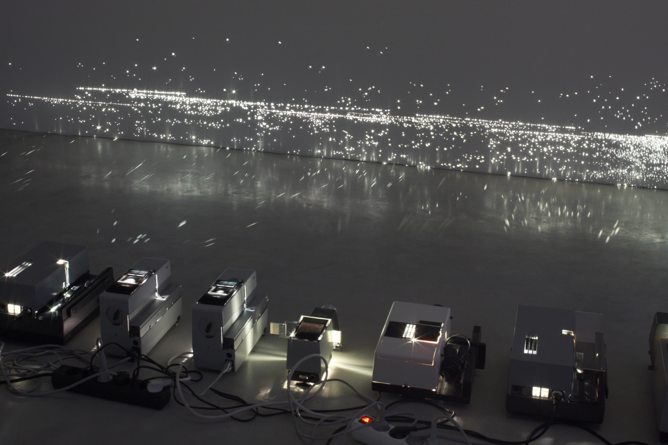 Installation électro-mécanique, verre, aimants, cuivre, lumière, électronique