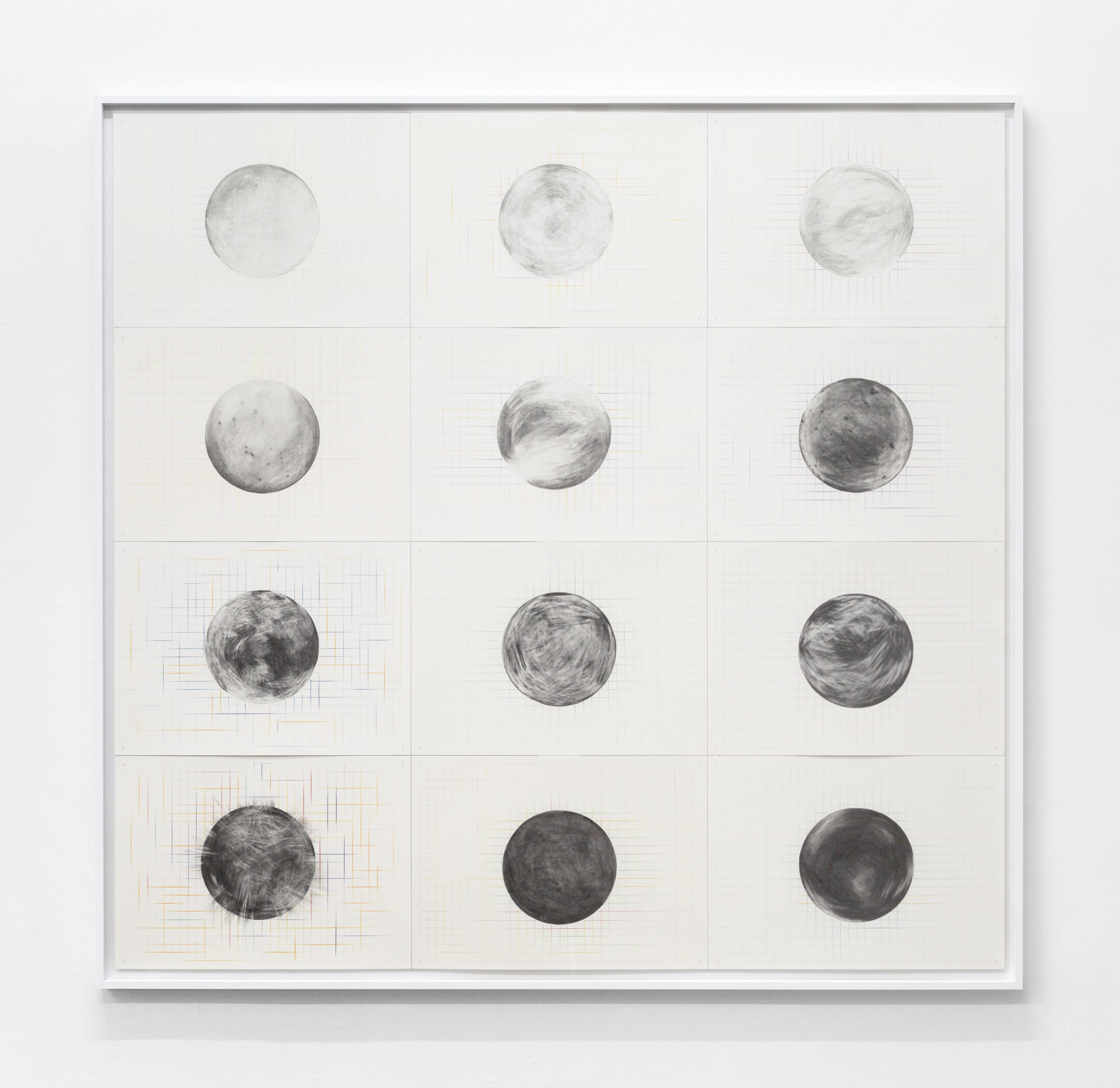 The mathematical space of the grid in the background and varying spectral colours convey the scientific spirit, while on the foreground a dynamic repetition unfolds, highlighting the importance and value of hand-drawn sketches in a society where these processes have largely been taken over by technologically driven applications. Ash Light (Lumière Cendrée in French), is an astronomical term for the dim illumination caused by the sunlight that reflects off a planet’s surface and onto the otherwise dark side of a moon in its orbit – or in our case: earthshine.