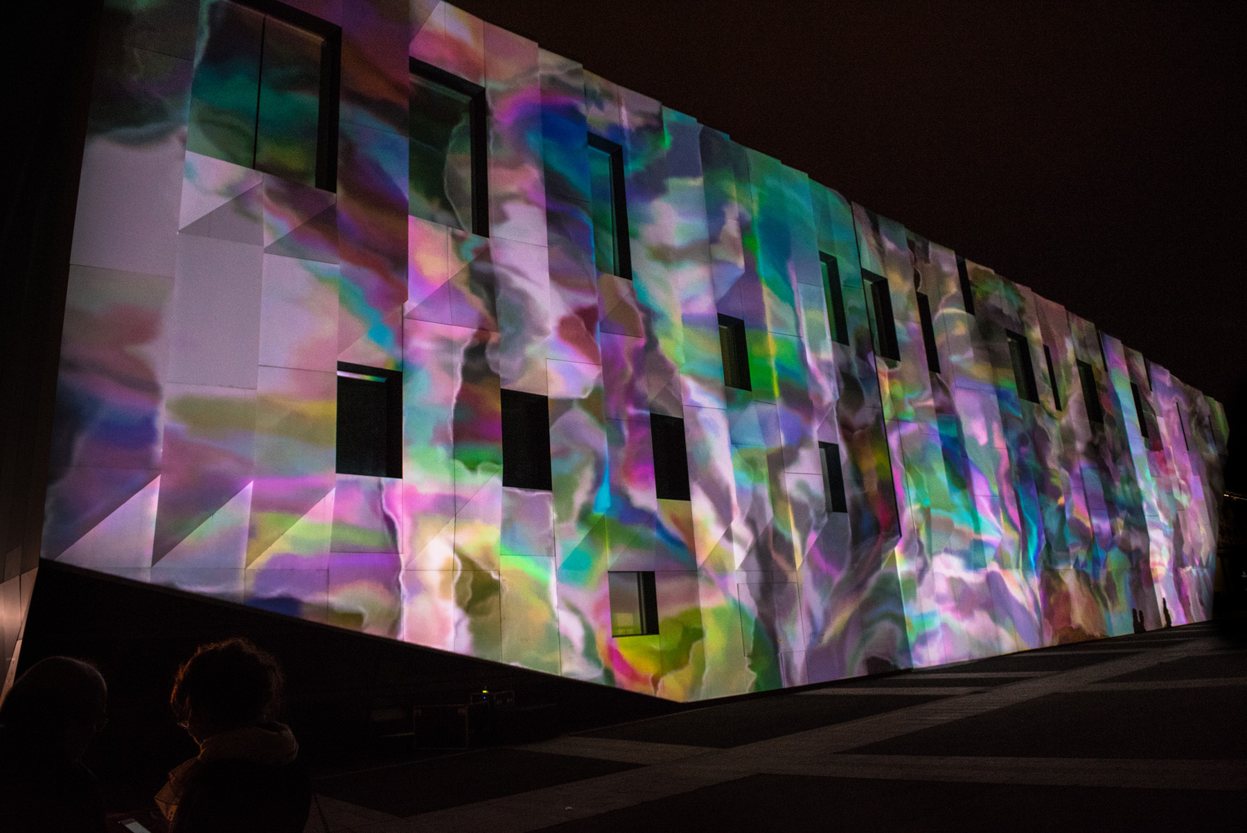 Hexalab invites the Hungarian artists Gaspar Battha & Andras Nagy for an original audiovisual creation with four hands. This monumental projection takes shape on the 70 meters façade of the Conservatory of Aix-en-Provence.