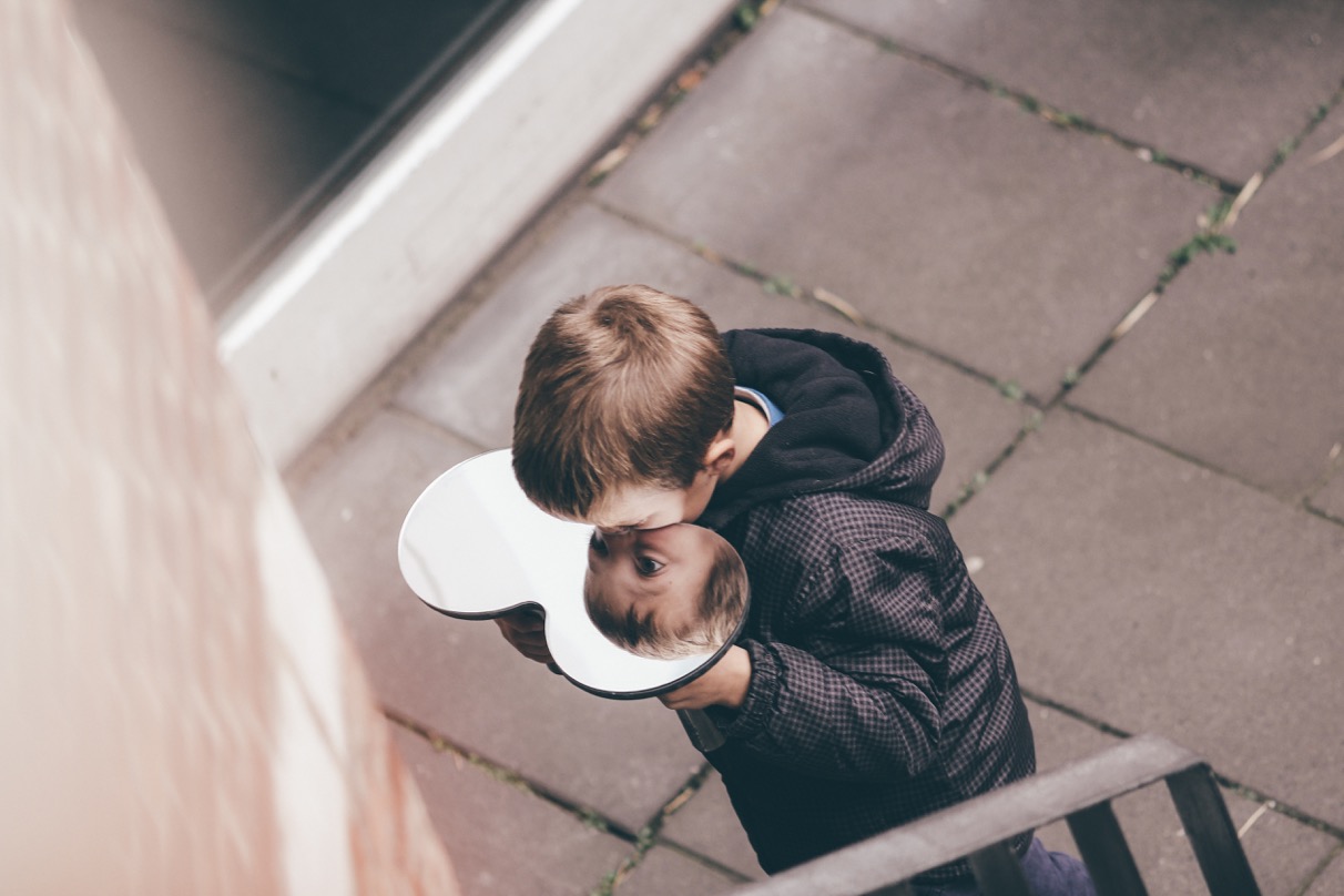 À l’aide d’un dispositif très simple c’est toute la perception d’un espace qui nous paraît changée. L’artiste, attentif aux petites choses simples du quotidien propose aux visiteurs de réaliser une action très simple : se déplacer dans l’espace en maintenant à l’aide des mains un objet-miroir sous les yeux en laissant son regard tomber en direction du miroir.
